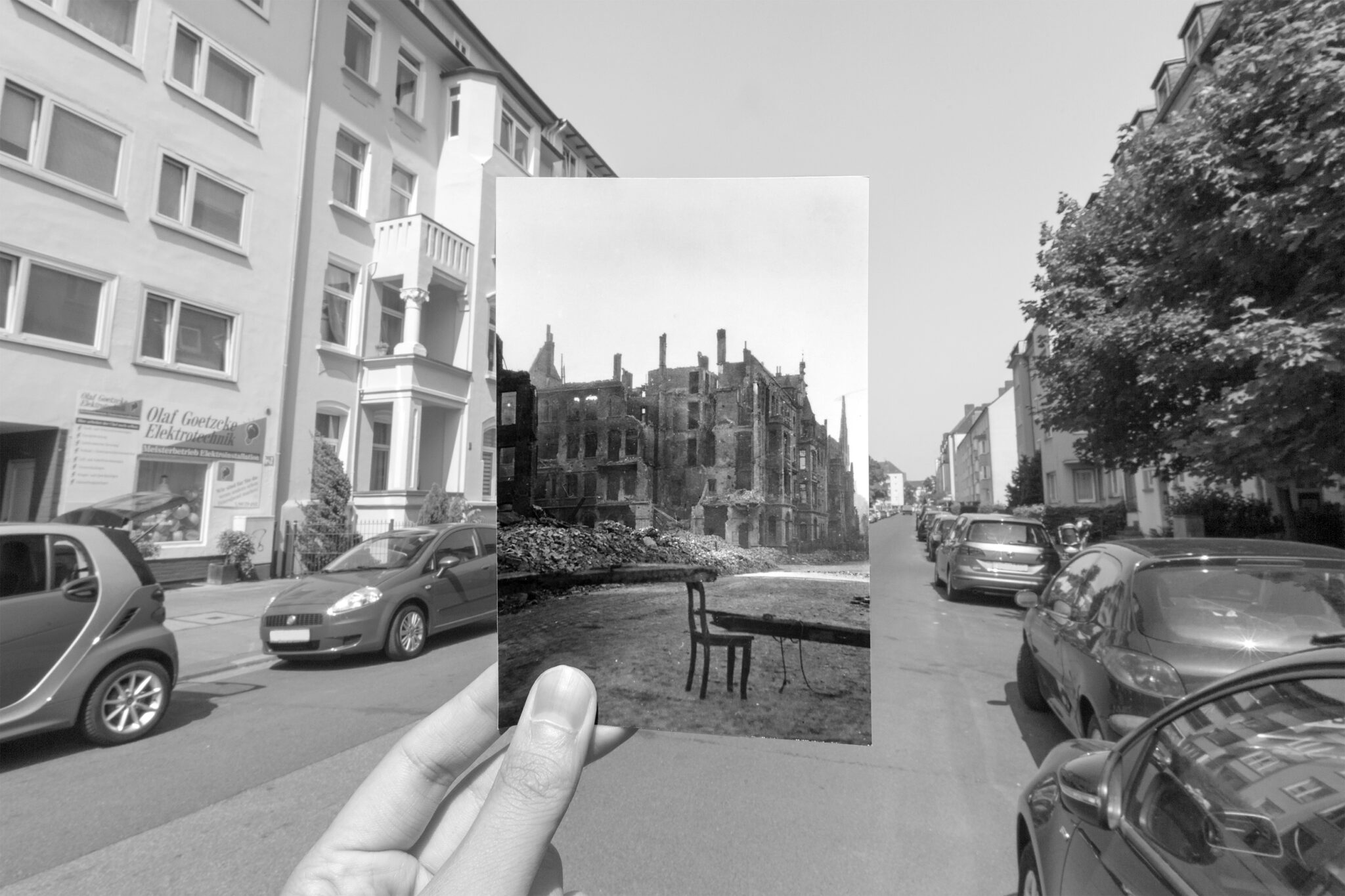 Med over 80 fotografier dokumenterer og sammenstiller Alireza Husseini historiske bilder fra andre verdenskrig med samtidens bylandskap. Utstillingen synliggjør hvordan spor etter krig, fascisme og Holocaust fortsatt er til stede i det europeiske landskapet. Husseini dokumenterer kontrasten mellom ruiner og gjenoppbygging, som i prosjektet fungerer som symboler på både historiens tyngde og håpet om en fredeligere fremtid.